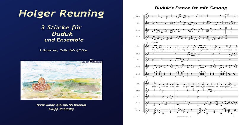 Diese drei Stücke entstanden auf Anregung eines Bekannten, der Literatur für Duduk suchte und mich fragte, ob ich nicht Lust hätte etwas für dieses Instrument zu schreiben. Ich habe dabei extra ein Stil gewählt, der für dieses Instrument eher untypisch ist.